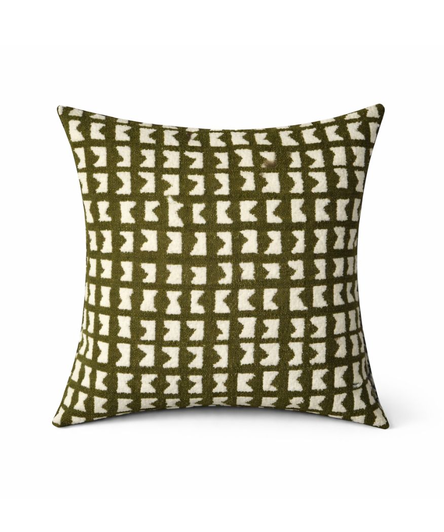 The contrast between the olive green pattern and light background gives it a modern, slightly retro feel while still remaining clean and versatile.